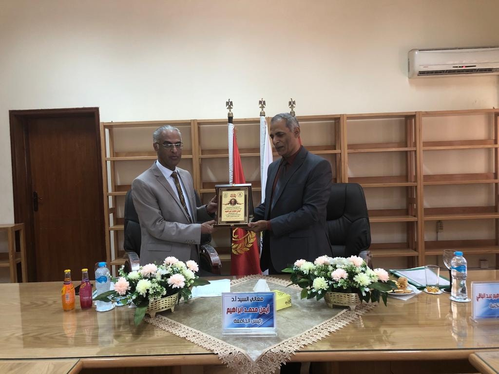كما قام سيادته بتكريم وتسليم شهادات تقدير لكل من: أ. السيدة السيد – أمينة كلية الصيدلة سابقاً، وأ. محمود ريحان – مسؤول أمن كلية الصيدلة لما بذلوه من جهد كبير في خدمة وتطوير الكلية . وانتقل المجلس بعد ذلك إلي جدول الأعمال ومناقشتها